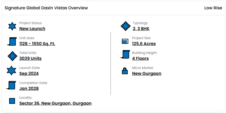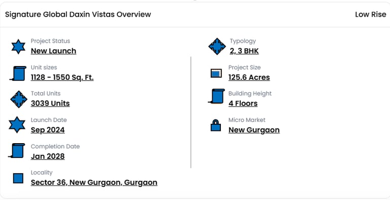 Signature Global Daxin Vistas in Sector 36, Gurgaon is an upcoming mid income residential project which has 2 and 3 BHK premium apartments on the Dwarka Expressway. We have designed this for urban families which we have balanced between affordability and elegance which in turn present to them spacious layouts, modern amenities and great connectivity. Also located in Sector 36, it provides quick access to NH-8, IMT Manesar and also to major corporate areas. We have put in landscaped gardens, a clubhouse, jogging tracks, a kids’ play area and also 24x7 security. As a development by Signature Global which is known for their timely delivery and value for money we present to you Daxin Vistas which is near top schools, hospitals and retail hubs. Also it is a great investment option for both home buyers and investors who are looking at growth in New Gurgaon’s rapidly developing corridor.