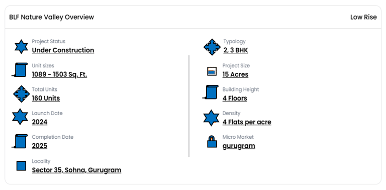 BLF Developers has introduced BLF Nature Valley in Sector 35, Sohna which incorporates luxury builder floors in Sohna , Gurgaon. The project is different from other developments and attempts to blend opulent lifestyle with the relaxing beauty of nature and urban environment for modern habitation. BLF Floors is located in the Sohna development area as they offer better access to important transportation routes, metropolitan amenities, business centers, and advanced facilities which are favorable for home buyers and investors.